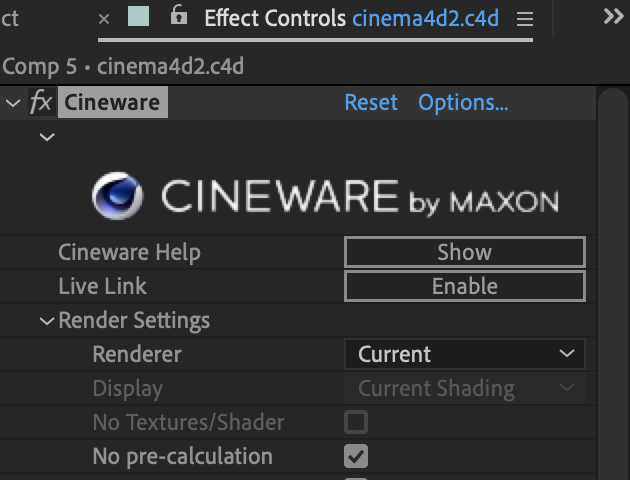 - If you don't see it After Effects choose Current in the After Effects in the Effects control panel under Renderer