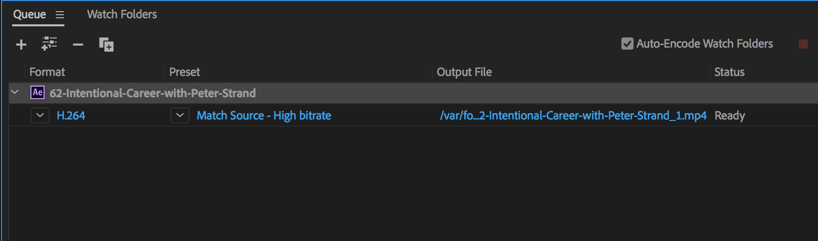 - Choose File > Export > Add to Adobe Media Encoder Queue.