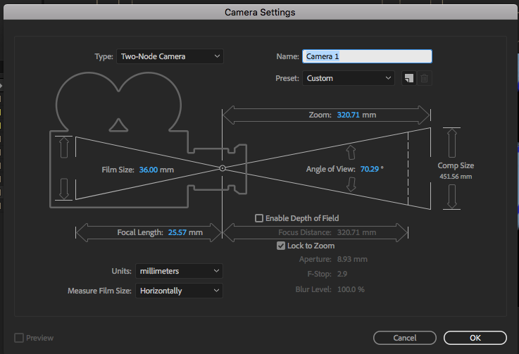 - To create a camera layer got to Layer>New>Camera